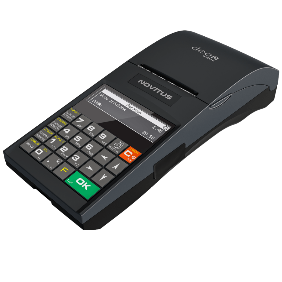 Jest to jedna z najbardziej ergonomicznych drukarek fiskalnych w ofercie NOVITUS, która jednocześnie obsługuje komunikację z Centralnym Repozytorium Kas (CRK), zgodnie z wymogami Rozporządzenia Ministra Przedsiębiorczości i Technologii z dnia 28 maja 2018 r. w sprawie kryteriów i warunków technicznych, którym muszą odpowiadać urządzenia fiskalne rejestrujące. Kopia wydruku dla użytkownika przechowywana jest w pamięci chronionej urządzenia, a dostęp do niej jest realizowany poprzez dedykowaną aplikację. Jak każda drukarka fiskalna marki Novitus, również Deon Online ma możliwość drukowania faktur VAT na swoim mechanizmie drukującym. Drukarki online na formatce faktury oprócz danych Nabywcy mogą również drukować dane Odbiorcy faktury VAT. Mogą też drukować dowolne wydruki niefiskalne, zawierająće tekst, grafikę oraz kody kreskowe i QR.